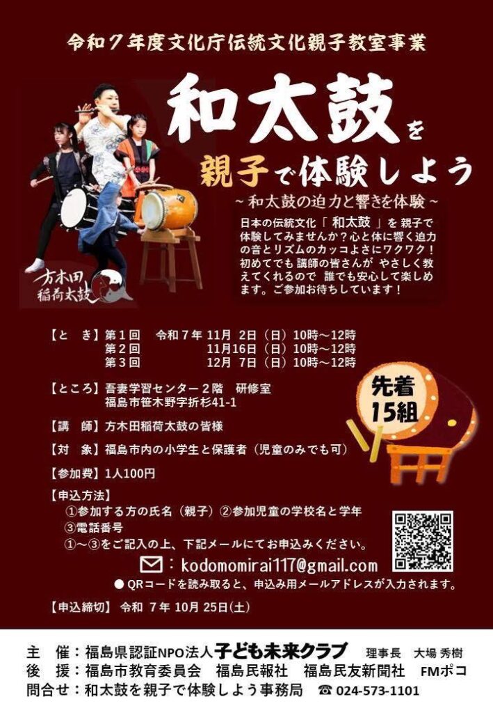 NPO法人子ども未来クラブ主催 『和太鼓を親子で体験しよう』開講です!