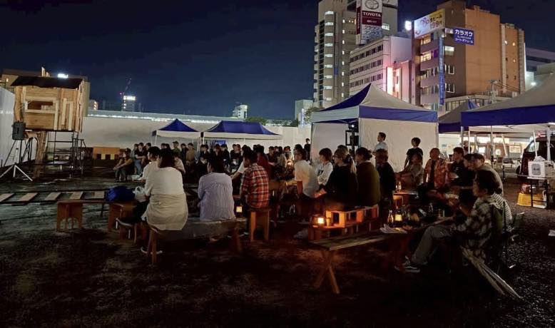 映画を見ながら飲んだり食べたりしたら駅前が盛り上がるよね!の丹治恵理子さんの呼びかけに共鳴して始まったこのイベント、第1回はコロナ禍で、中合の二番館に投影、しかも当時は北面に子ども未来クラブの小学生ポスターも投影されていて、とても懐かしい。今では、これほど多くの来場者があり、ボランティアに支えられるイベントになりました。再開発ビル完成の時には更にパワーアップして復活をお祈りします!』
