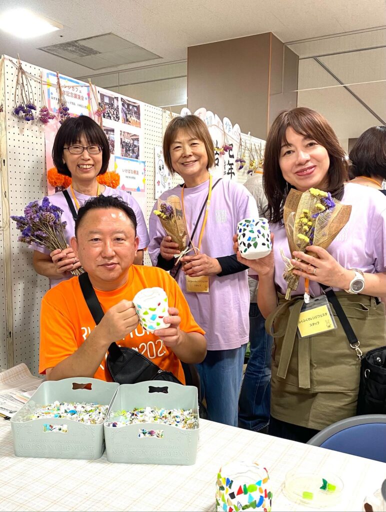 いけばな療法の山田礼子先生のブースでは粘土で花瓶工作。