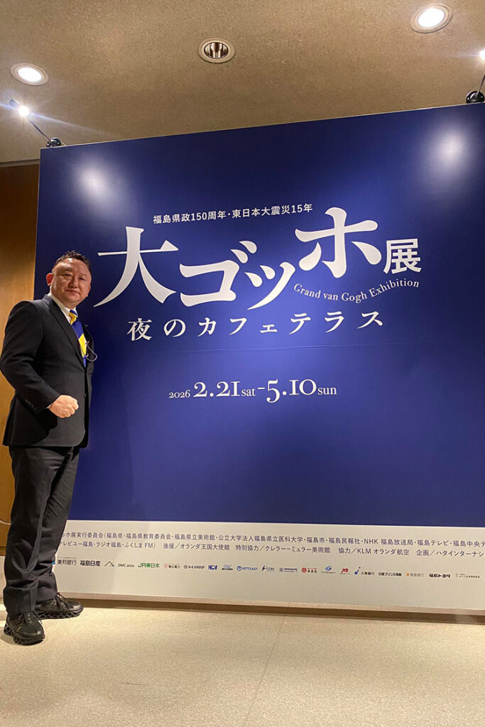 本日開会式並びに内覧会がありまして「FMポコラジオパーソナリティ」でご案内頂き、出席いたしました。内堀知事や馬場市長はじめ、実行委員会の皆様、マスコミ関係と共に一足早く鑑賞してきました。ゴッホ作品の惹きつける魅力、力強さ、明るさ、ぜひぜひ会場にお越しください!チケットや交通手段はWEBをご覧下さい。https://www.minpo.jp/vangogh/
