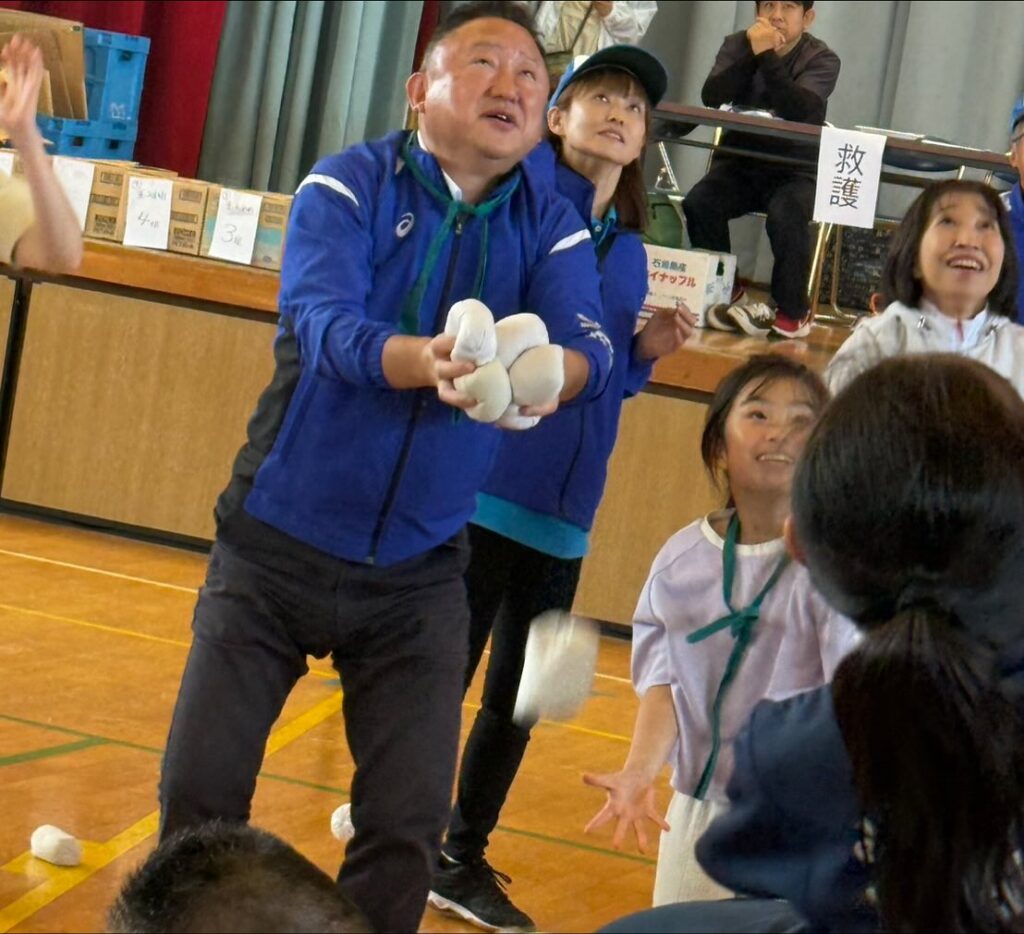大場秀樹が会長を務める吉井田体育協会主催の大運動会が校庭が使えず吉井田小学校体育館で開催されました。大場は主催者挨拶で「今日はたくさんの小学生が参加してます、大きくなったら一瞬でも思い出してもらえる様な運動会にしたい」。怪我やトラブル無く成功裡に終わりました。開催にあたり各町内会、各団体、吉井田小学校マーチングバンド部、地元消防団、そして半年かけて準備、当日運営に携われた体育協会の皆さまに心から感謝申し上げます。